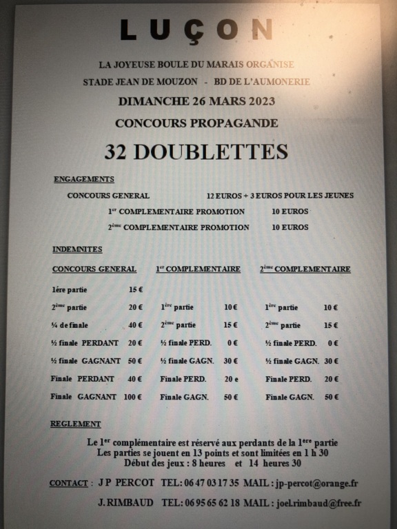 Le Club de Luçon organise son traditionnel concours du printemps le dimanche 26 mars. Ci- joint le programme.