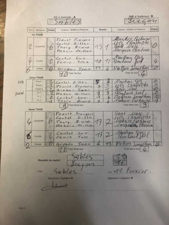 Le score ne reflète pas l'intensité des parties, et le résultat encore très incertain à 30 minutes du temps réglementaire. Ci joint feuille de match avec résultats détaillés.