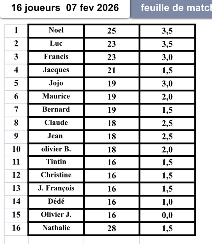 BRAVO à tous ! Voici le classement final du ciblé points : 1er: notre Président Noel , 2ème Luc, 3 ème Francis, 4ème Jacques, et 5ème Jojo.