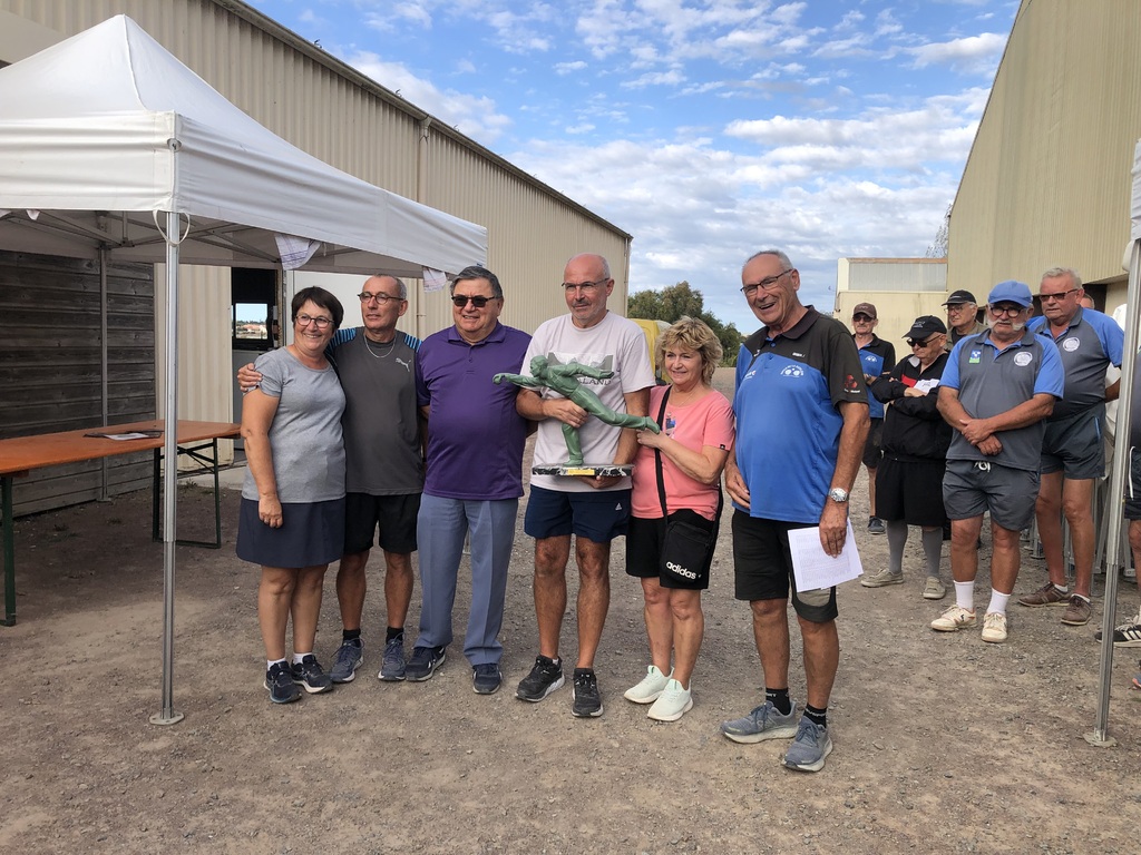 Quelle belle fete bouliste ! La participation de tous les présidents des clubs de la ligue Bretagne Pays de Loire et alentours, en plein mois d'aout, et de la pluspart des meilleurs joueurs régionaux actuels, a fait de cette journée un succès inoubliable. Merci à tous et à toutes d'etre venus et d'avoir donné un spectable de qualité ! Coté compétition, c'est l'équipe Jameau de l'EBM du Mans qui l'emporte et s'octroit ainsi le Challenge offert gracieusement par Mr Hirel. La deuxième place du podium revient à l'équipe Meffrey de Noyen, la troisième place à l'équipe Parès de Basse indres, et enfin l'équipe Mahé du Chateau du Loir qui prend la quatrième place. Bravo à vous messieurs et mesdames pour vos résultats ! Coté ambiance, la bonne humeur était au rendez vous, le beau temps aussi ! Quel plaisir de voir nos amis boulistes se retrouver ( pour certains perdus de vue depuis longtemps ) et vivre pleinement cette journée. Coté partenaires, à souligner l'aide exeptionnelle de la municipalité Sablaise, tant logistique que matériel, et l'aide financière de nos sponsors, à savoir le Casino des Pins, le Crédit Mutuel, Le Comptoir La Sablaise, et bien sur le Super U de la Chaume averc le pret de la remorque frigorifique et le financement de l'apéritif. Jean Grobon notre président du Club de la Rudelière, et Serge Olivier, président de la Ligue Bretagne Pays de Loire, ont cloturés la journée chacun par un discours de félicitations, remerciant de sa présence et de son soutient permanent depuis des années Mr Hecht, adjoint aux sport de la Municipalité ainsi que tous les sponsors, les participants et les bénévoles, et invitant chacun à prendre le verre de l'amitié. Toutes les photos de la journée seront bientot disponibles sur le site, dans l'onglet Photos.
